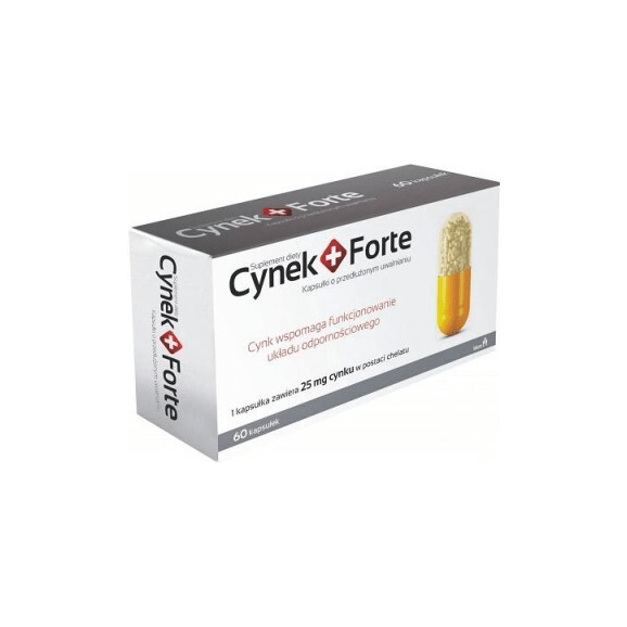 Suplement diety Cynek+Forte o wysokiej zawartości cynku. Cynk pomaga w prawidłowym funkcjonowaniu układu odpornościowego, w utrzymaniu