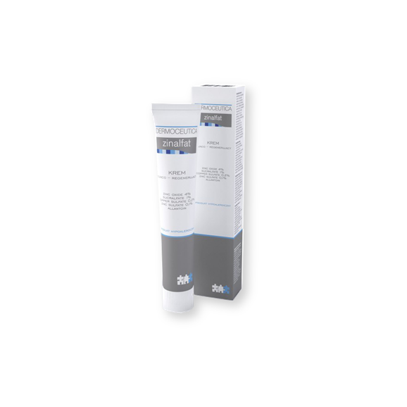 Dermoceutica Zinalfat, krem kojąco-regenerujący - skuteczny kosmetyk kojąco-regenerujący. Składniki preparatu skutecznie łagodzą otarcia, odparzenia i różnego rodzaju podrażnienia, w tym zaczerwienienie, uczucie swędzenia i napięcia skóry, nadmierne złuszczanie. Krem zawiera wyjątkowe połączenie składników o działaniu ochronnym, kojącym i regenerującym.
