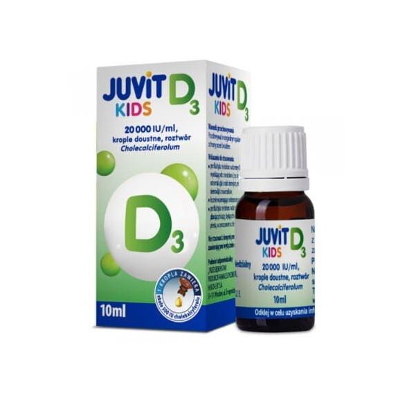 Juvit Kids D3 jest lekiem w formie kropli do podawania doustnego. Zawiera witaminę D3 (cholekalcyferol).