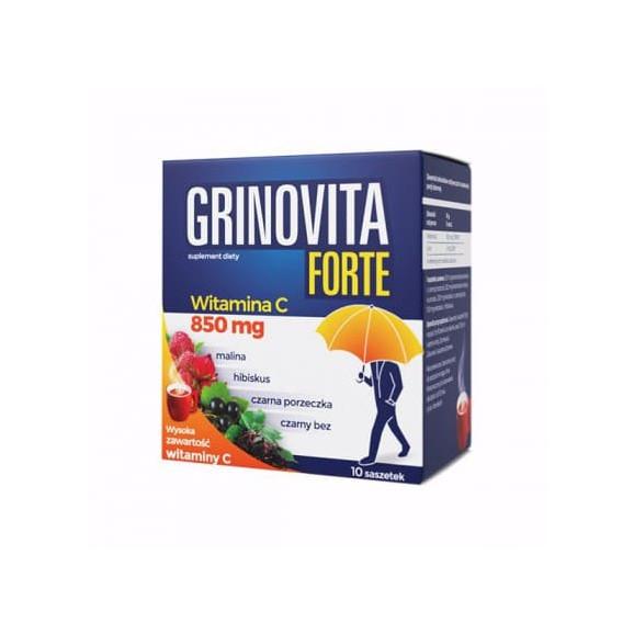 Grinovita Forte stanowi bogate źródło witaminy C (850 mg w 1 saszetce), zawiera cynk, wyciąg z owoców czarnego bzu, hibiskusa i naturalne koncentraty soków z czarnej porzeczki oraz sproszkowanych owoców maliny w saszetce.