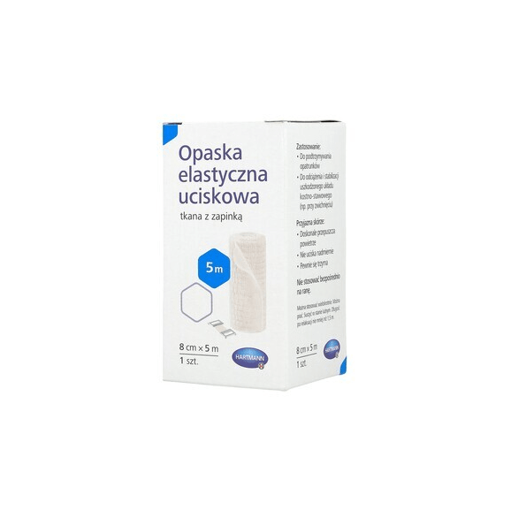 Hartmann, opaska elastyczna uciskowa z zapinką, 8 cm x 5 m, 1 szt.