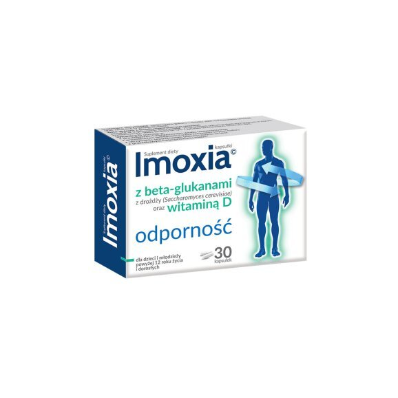 Suplement diety Imoxia zawiera unikalne połączenie beta-glukanów z drożdży z witaminą D w postaci kapsułek. Beta-glukany z drożdży to złożone polisacharydy, które znajdują się w ścianach komórkowych drożdży, w tym z gatunku Saccharomyces cerevisiae oraz zbóż. Zawarta w preparacie Imoxia witamina D bierze udział w prawidłowym funkcjonowaniu układu odpornościowego oraz w prawidłowym wchłanianiu i wykorzystywaniu wapnia i fosforu. Wspomaga również utrzymanie prawidłowego poziomu wapnia we krwi oraz przyczynia się do prawidłowego funkcjonowania mięśni.