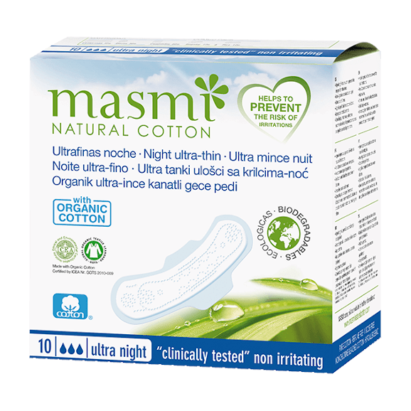 Najwyższej jakości produkty w całości wykonane ze 100% certyfikowanej bawełny organicznej (włącznie z wkładem pochłaniającym). Produkt w 100% organiczny, hipoalergiczny, bez składników zapachowych, sztucznych absorbentów. 0% chemii, 0% GMO, 0% chloru. Nie zawierają perfum, celulozy, wiskozy, dioksyn, itp. które mogą uszkodzić skórę kobiet, powodować stany zapalne i alergie. Podpaski posiadają jedwabistą zewnętrzną powłokę ze specjalnym przeplotem zapobiegającym przyklejaniu się do skóry włókien bawełny. Zastosowana specjalna konstrukcja z podtrzymującą taśmą klejącą na zewnętrznej stronie podpaski. Podpaski zapewniają długotrwałą i komfortową ochronę. Oddychające – najlepszy przepływ powietrza przez naturalne włókna. Gwarantują optymalny poziom wilgotności z zewnątrz – aby ograniczyć odwodnienie skóry w miejscach intymnych. pH naturalnej bawełny jest zgodne z fizjologicznym pH naszej skóry. W wyniku czego produkty MASMI nie zaburzają naturalnej kwasowości pochwy. Podpaski MASMI są miękkie i delikatne w kontakcie za skórą, gwarantują maksymalny komfort. Dla zapewnienia, że produkty Masmi są wykonane ze 100% bawełny organicznej, są hipoalergiczne i biodegradowalne – posiadają aż osiem certyfikatów: ICEA, GOTS, FSC, VEGAN, COTTON NATURAL, NOT TESTED ON ANIMALS. Wszystkie produkty są testowane klinicznie.