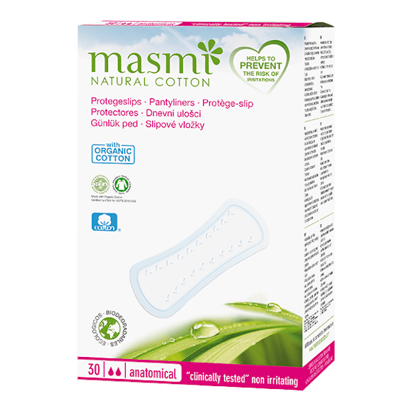 Najwyższej jakości produkty w całości wykonane ze 100% certyfikowanej bawełny organicznej (włącznie z wkładem pochłaniającym). Produkt w 100% organiczny, hipoalergiczny, bez składników zapachowych, sztucznych absorbentów. 0% chemii, 0% GMO, 0% chloru. Wkładki pozwalające skórze oddychać, zapewniają wysoki komfort i są zalecane dla kobiet ze skórą wrażliwą i skłonną do podrażnień. Nie zawierają perfum, celulozy, wiskozy, dioksyn, itp. które mogą uszkodzić skórę kobiet, powodować stany zapalne i alergie. Posiadają jedwabista zewnętrzna powlokę ze specjalnym przeplotem zapobiegającym przyklejaniu się do skóry włókien bawełny. Oddychające – najlepszy przepływ powietrza przez naturalne włókna. Gwarantują optymalny poziom wilgotności z zewnątrz – aby ograniczyć odwodnienie skóry w miejscach intymnych. pH naturalnej bawełny jest zgodne z fizjologicznym pH naszej skóry w wyniku czego produkty MASMI nie zaburzają naturalnej kwasowości pochwy. Wkładki MASMI są miękkie i delikatne w kontakcie za skórą, gwarantują maksymalny komfort. Dla zapewnienia, że produkty Masmi są wykonane ze 100% bawełny organicznej, są hipoalergiczne i biodegradowalne – posiadają aż osiem certyfikatów: ICEA, GOTS, FSC, VEGAN, COTTON NATURAL, NOT TESTED ON ANIMALS. Wszystkie produkty są testowane klinicznie.
