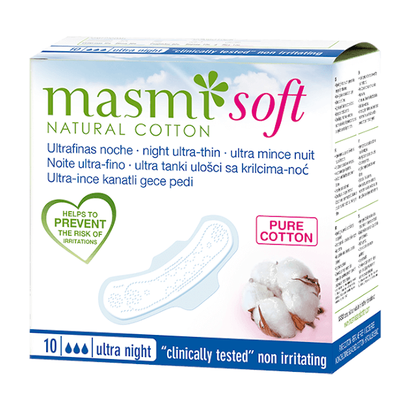Najwyższej jakości produkty w całości wykonane ze 100% certyfikowanej bawełny organicznej (włącznie z wkładem pochłaniającym). Produkt w 100% organiczny, hipoalergiczny, bez składników zapachowych, sztucznych absorbentów. 0% chemii, 0% GMO, 0% chloru. Nie zawierają perfum, celulozy, wiskozy, dioksyn, itp. które mogą uszkodzić skórę kobiet, powodować stany zapalne i alergie. Podpaski posiadają jedwabistą zewnętrzną powłokę ze specjalnym przeplotem zapobiegającym przyklejaniu się do skóry włókien bawełny. Zastosowana specjalna konstrukcja z podtrzymującą taśmą klejącą na zewnętrznej stronie podpaski. Podpaski zapewniają długotrwałą i komfortową ochronę. Oddychające – najlepszy przepływ powietrza przez naturalne włókna. Gwarantują optymalny poziom wilgotności z zewnątrz – aby ograniczyć odwodnienie skóry w miejscach intymnych. pH naturalnej bawełny jest zgodne z fizjologicznym pH naszej skóry. W wyniku czego produkty MASMI nie zaburzają naturalnej kwasowości pochwy. Podpaski MASMI są miękkie i delikatne w kontakcie za skórą, gwarantują maksymalny komfort. Dla zapewnienia, że produkty Masmi są wykonane ze 100% bawełny organicznej, są hipoalergiczne i biodegradowalne – posiadają aż osiem certyfikatów: ICEA, GOTS, FSC, VEGAN, COTTON NATURAL, NOT TESTED ON ANIMALS. Wszystkie produkty są testowane klinicznie.