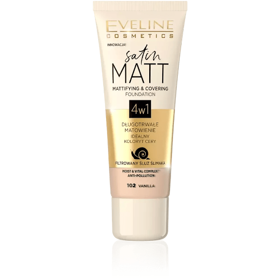 Podkład matujący Eveline Satin Matt, 102 VANILLA, 30 ml