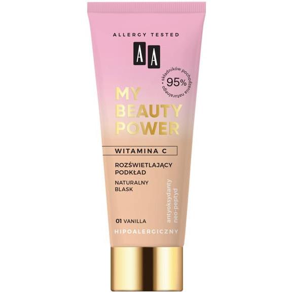 Podkład do twarzy AA My Beauty Power, rozświetlający, 01 VANILLA, 30 ml
