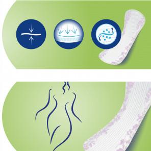 Zastosowanie technologii microPROTEX™ daje uczucie suchości i zapewnia bezpieczeństwo, natomiast system Fresh Odour Control unicestwia nieprzyjemny zapach. Ponadto wkładki są ultracieknie co gwarantuje dyskrecję użytkowania. Wizualnie wyglądają jak klasyczne wkładki, jednak cechują się znacznie wyższą chłonnością. Są delikatne dla skóry i nie zawierają sztucznych środków zapachowych. Wyrób został przebadany dermatologicznie, nie zawiera środków zapachowych.