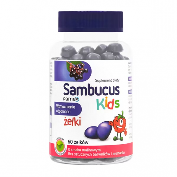 Sambucus Kids to suplement diety w postaci żelek przeznaczony dla dzieci powyżej 3. roku życia. Formuła łączy wysokoskoncentrowany ekstrakt z owoców czarnego bzu (DER 1:18) z witaminą C oraz cynkiem, które pomagają wspierać prawidłowe funkcjonowanie układu odpornościowego. Bez czarny jest tradycyjnie stosowany jako wsparcie w okresie zwiększonego narażenia na infekcje oraz dla prawidłowej pracy górnych dróg oddechowych. Produkt zawiera wyłącznie naturalne barwniki i aromaty oraz ma malinowy smak, co ułatwia podawanie dzieciom.