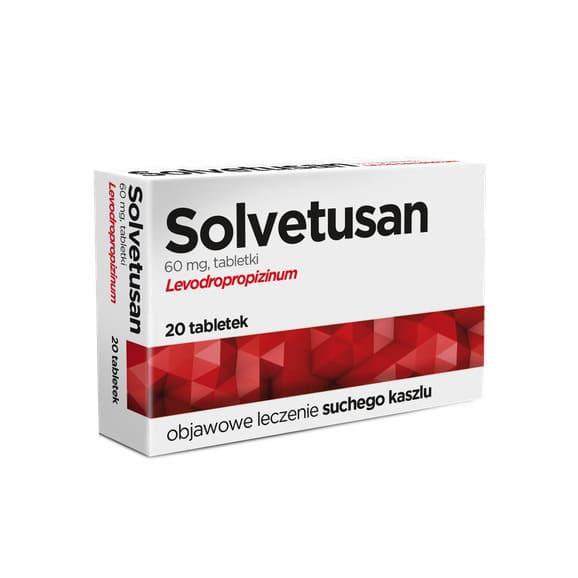 Lek Solvetusan zawiera substancję czynną lewodropropizynę o działaniu przeciwkaszlowym i znoszącym skurcz oskrzeli. Wiele danych wskazuje, że lek ten skutecznie hamuje kaszel o różnym pochodzeniu, jak np. kaszel związany z zakażeniami górnych i dolnych dróg oddechowych, krztusiec czy kaszel w przebiegu raka płuca.