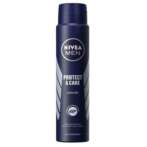 NIVEA Men Protect & Care Antyperspirant w sprayu zawiera składniki oraz zapach Kremu NIVEA, dzięki czemu łagodnie pielęgnuje skórę pod pachami, a jednocześnie zapewnia wysoce efektywną ochronę przed poceniem. To idealne połączenie skuteczności i pielęgnacji sprawia, że możesz czuć się pewnie przez cały dzień. Antyperspirant będzie zapobiegać nadmiernemu poceniu się nawet przez 48 godzin, zapewniając Ci przyjemny, męski zapach NIVEA. Produkt nie zawiera alkoholu i jest dostępny również w kulce i w sztyfcie. Tolerancja dla skóry potwierdzona dermatologicznie.