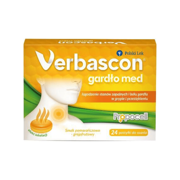Verbascon Gardło Med, pastylki do ssania, pomarańcza/grejfrut, 24 szt.