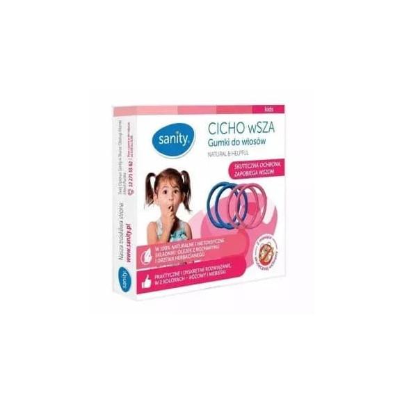 Gumki do włosów Cicho wSZA to prosty i dyskretny produkt, który stanowi alternatywę dla płynnych środków aplikowanych na skórę głowy dziecka. Przeznaczone są do zapobiegania zarażeniu wszami przez dziecko, szczególnie w miejscach, gdzie jest na nie szczególnie narażone, jak np. przyjęcia, obozy, szkoła lub przedszkole. Działanie gumki opiera się na wydzielaniu olejków eterycznych, które skutecznie maskują zapach ludzkiego ciała oraz odstraszają i zwalczają wszy.