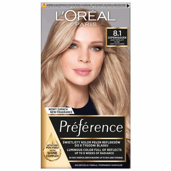 Farba do włosów L’Oréal Paris Preference, 8.1 Copenhague JASNY POPIELATY BLOND, 1 szt.