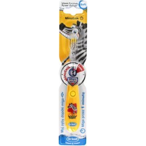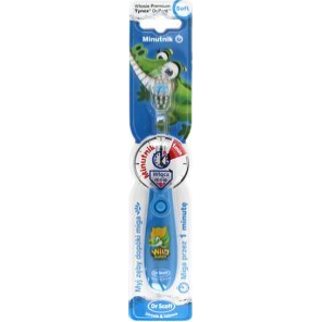Migająca szczoteczka do zębów z minutnikiem Dr Scott jest zaprojektowana dla dzieci powyżej 3 roku życia. Ma wbudowany minutnik, który wyłącza się po 1 minucie, wyznaczając optymalny czas dla umycia górnych i dolnych zębów. Kolorowe wzory i migoczące światełko zachęcają dzieci do nauki codziennego, samodzielnego mycia zębów.