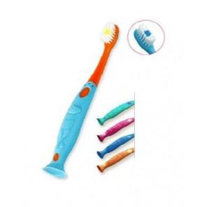 Szczoteczkę charakteryzuje kształt dostosowany do dziecka. Rączka z łatwością mieści się w dłoni, maskotka i przyssawka na jej końcu zapewniają dobrą zabawę przy myciu zębów. Szczoteczka jest zakończona małą główką i delikatnymi włóknami dzięki czemu z łatwością mieści się w ustach dziecka i nie powoduje podrażnień dziąseł.
