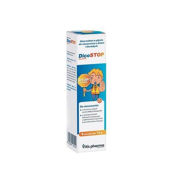 Dicostop, płyn doustny, saszetki, 15 g x 4 szt.
