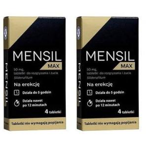 Mensil Max to lek w postaci tabletek do rozgryzania i żucia o miętowym smaku dla dorosłych mężczyzn z zaburzeniami erekcji. Jako substancję czynną w leku zastosowano maksymalną dawkę syldenafilu dostępną bez recepty. Syldenafil to związek, który należy do leków z grupy inhibitorów fosfodiestrazy typu 5 i jest skutecznym oraz najbardziej znanym składnikiem wspomagającym uzyskanie, i utrzymanie erekcji. Wspomaga on rozkurcz naczyń krwionośnych w prąciu, zwiększając tym samym napływ krwi do prącia podczas podniecenia seksualnego. Warunkiem koniecznym do działania leku jest wcześniejsze pobudzenie seksualne.