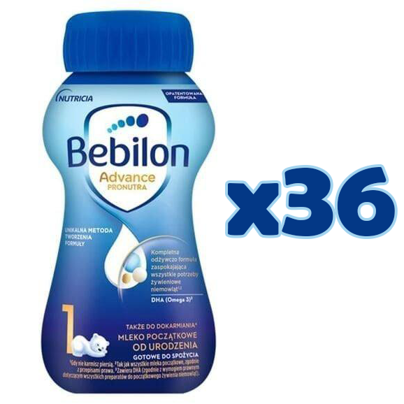 - Mleko początkowe w płynie Bebilon 1 z Pronutra Advance to gotowy do spożycia pokarm dla niemowląt w wieku 0-6 miesięcy, które z różnych przyczyn nie są karmione piersią lub muszą być dokarmiane. Zawiera wszystkie składniki odżywcze, niezbędne dla rozwoju i wzrostu dzieci w początkowym okresie życia