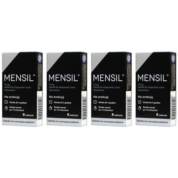 Mensil 25 mg to lek w postaci tabletek do rozgryzania i żucia. Substancją czynną zawartą w leku jest syldenafil, który należy do leków z grupy inhibitorów fosfodiesterazy typu 5 (PDE5). Lek Mensil działa wspomagając rozkurczu naczyń krwionośnych w prąciu, prowadząc do napływu krwi do prącia w trakcie podniecenia seksualnego.