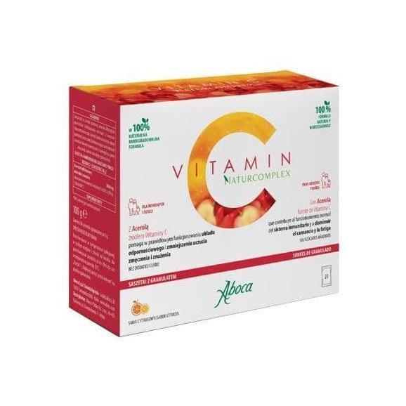 Aboca Vitamin C Naturcomplex to suplement w saszetkach, który dostarcza zalecaną dzienną dawkę witaminy C wraz z innymi substancjami naturalnie występującymi w ekstrakcie z aceroli. Witamina C między innymi pomaga w: prawidłowym funkcjonowaniu układu odpornościowego, przyczynia się do zmniejszenia uczucia zmęczenia i znużenia, pomaga w ochronie komórek przed stresem oksydacyjnym oraz w prawidłowym funkcjonowaniu układu nerwowego, a także zwiększa przyswajanie żelaza.