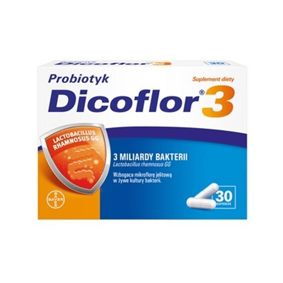 Dicoflor 3 to preparat osłonowy, który zawiera żywe kultury bakterii Lactobacillus rhamnosus GG (ATCC 53103) o udowodnionym w licznych badaniach klinicznych bezpieczeństwie stosowania.