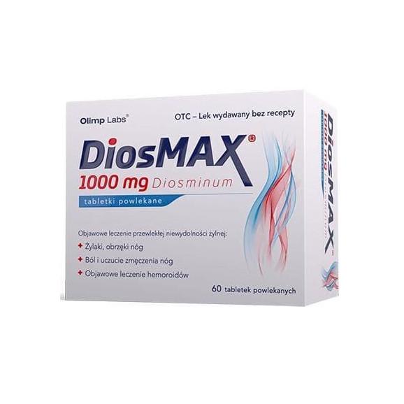 DiosMax 1000 mg to lek wydawany bez recepty, wskazany do stosowania w leczeniu objawów występujących w przewlekłej niewydolności krążenia żylnego w obrębie kończyn dolnych, takich jak: obrzęki, uczucie zmęczenia, ból i ciężkość nóg, pieczenie, nocne kurcze oraz poszerzanie bardzo drobnych naczyń żylnych (tzw. „pajączki”); objawowym leczeniu żylaków kończyn dolnych, zaostrzeniu dolegliwości związanych z żylakami odbytu (hemoroidów).