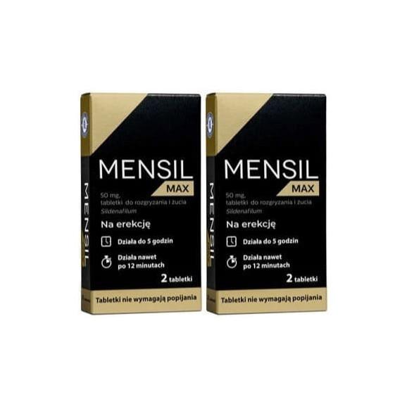 Mensil Max 50 mg to lek w postaci tabletek do rozgryzania i żucia stosowany w celu poprawy erekcji u mężczyzn z zaburzeniami wzwodu. Substancją czynną jest syldenafil, należący do leków z grupy inhibitorów fosfodiesterazy typu 5 (PDE5). Lek Mensil wspomaga rozkurcz naczyń krwionośnych w prąciu, prowadząc do napływu krwi do prącia w trakcie pobudzenia seksualnego. Pobudzenie seksualne jest konieczne do wystąpienia korzystnych efektów leczniczych sildenafilu.