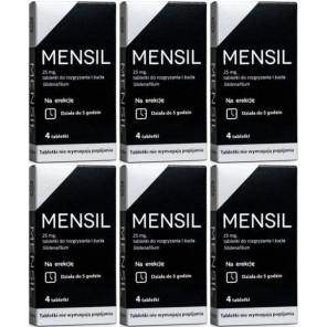 Mensil zawiera substancję czynną syldenafil, który należy do leków z grupy inhibitorów fosfodiesterazy typu 5 (PDE5). Lek działa poprzez wspomaganie rozkurczu naczyń krwionośnych w prąciu, zwiększając napływ krwi do prącia podczas podniecenia seksualnego. Syldenafil pomaga osiągnąć wzwód jedynie pod warunkiem uprzedniego pobudzenia seksualnego.