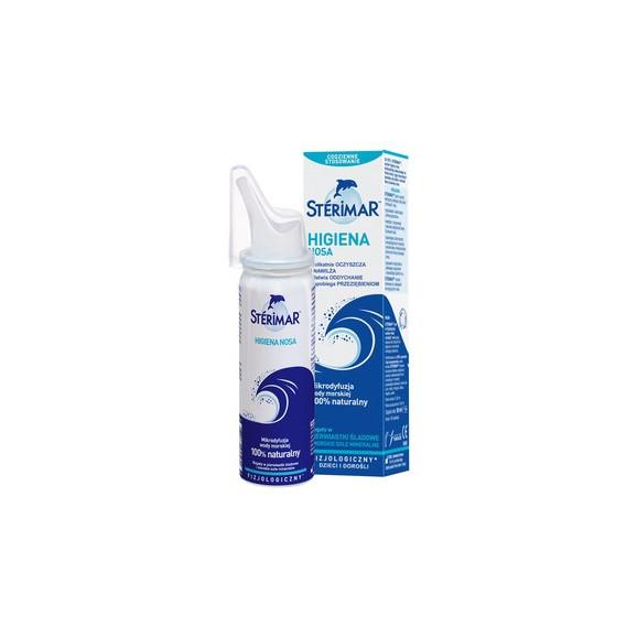 Codzienna higiena nosa preparatem Sterimar przywraca wysuszonym śluzówkom ich prawidłowe, fizjologiczne funkcje, dzięki zawartym mikroelementom (pierwiastkom śladowym), które są naturalnymi składnikami wody morskiej. Dzięki systemowi mikrodyfuzji, preparat Sterimar zapewnia oczyszczanie jam nosowych i długotrwały kontakt roztworu wody morskiej z błoną śluzową nosa oraz ułatwia absorpcję minerałów i mikroelementów zawartych w wodzie morskiej. Powoduje nawilżenie i delikatne spłukanie śluzówek nosa, przywracając drożność i komfort oddychania.