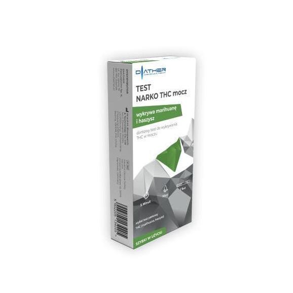 Narko Test THC mocz to jednorazowy test paskowy do wykrywaniaobecności narkotyków w moczu. THC (tetrahydrokannabinol) to główny składnik psychoaktywny marihuany i haszyszu. Działanie THC utrzymuje się przez ok. 2 godziny po wypaleniu pojedynczego papierosa z marihuaną, obecność substancji można stwierdzić od 3 do 10 dni po jej zażyciu.