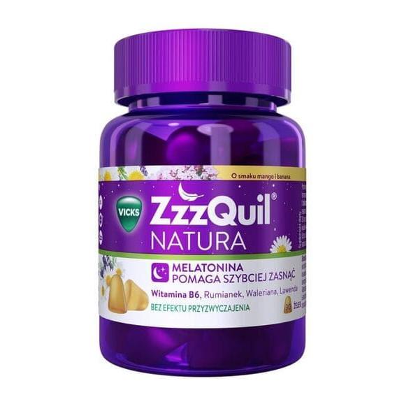ZzzQuil Natura, żelki z melatoniną, mango-banan, 30 szt.