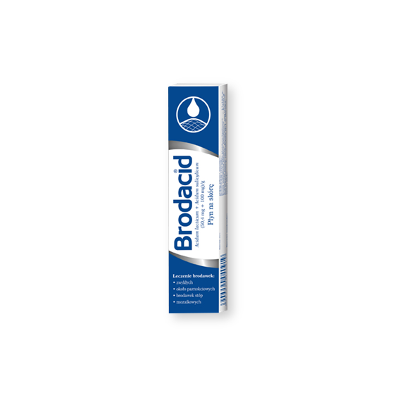 Lek Brodacid ma postać płynu na skórę, do leczenie brodawek zwykłych, około paznokciowych, brodawek stóp i mozaikowych.