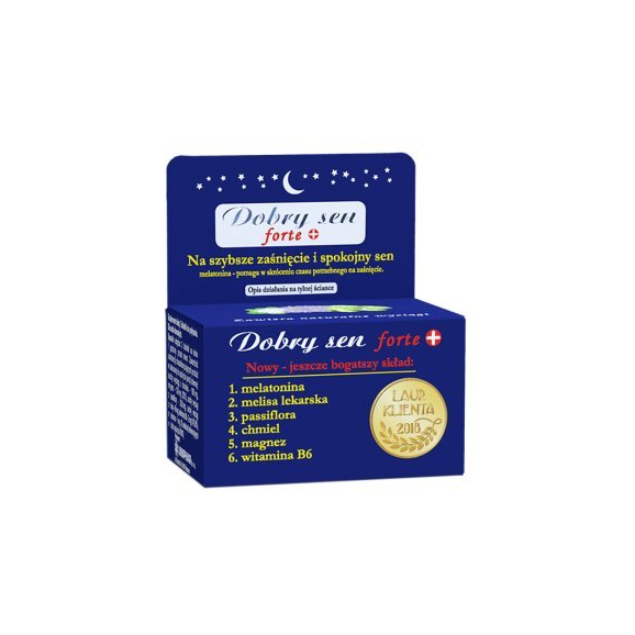 Dobry Sen Forte - suplement diety zawierający ekstrakty ziołowe, które wykazują działanie uspokajające. Produkt przeznaczony dla osób dorosłych.