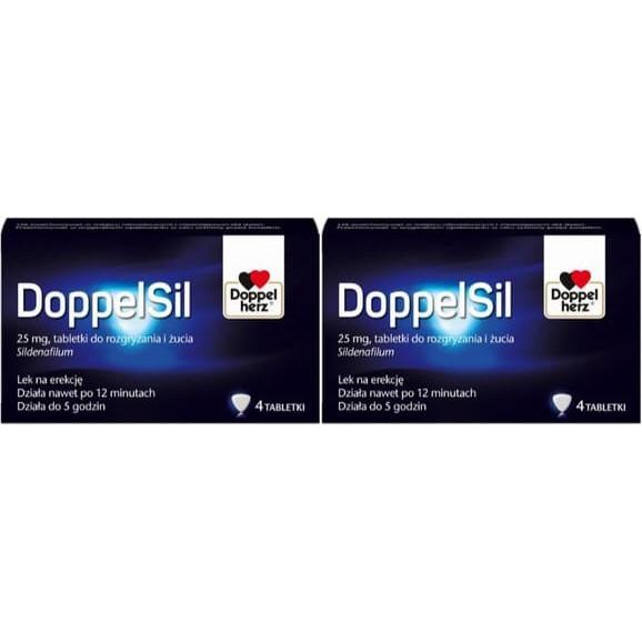 Tabletki DoppelSil 25 mg to lek dla dorosłych mężczyzn stosowany w leczeniu zaburzeń erekcji zwanych również impotencją. Zaburzenia wzwodu określane są jako niemożność uzyskania lub utrzymania erekcji prącia wystarczającej do odbycia stosunku płciowego. Substancją czynną produktu leczniczego jest syldenafil (łac. sildenafilum), związek należący do grupy inhibitorów fosfodiesterazy typu 5 (PDE5). Lek wspomaga rozkurcz naczyń krwionośnych w prąciu, zwiększając napływ krwi do prącia podczas podniecenia seksualnego, czego efektem jest wzwód. DoppelSil pomaga osiągnąć wzwód jedynie pod warunkiem uprzedniego pobudzenia seksualnego.