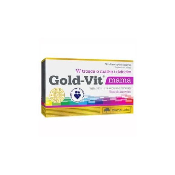 Gold-Vit mama to starannie opracowana kompozycja witamin i składników mineralnych, w tym w formie wysoko przyswajalnych chelatów aminokwasowych Albion, uzupełniająca zwiększone zapotrzebowanie na mikroskładniki odżywcze dla kobiet w okresie ciąży i laktacji. Formuła uzupełniona została o ekstrakt żurawiny wielkoowocowej (Vaccinum macrocarpon Ait.) oraz żelazo Ferrochel i kwas foliowy w dawce rekomendowanej przez Zespół Ekspertów Polskiego Towarzystwa Ginekologicznego dla kobiet w ciąży.