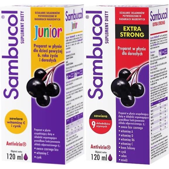 Zestaw Sambucol Junior, płyn, 120 ml + Sambucol Extra Strong, płyn, 120 ml