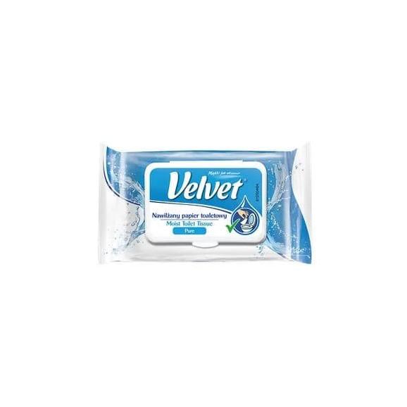 Velvet Pure nawilżany papier toaletowy to produkt o łagodnej formule przeznaczony do codziennej pielęgnacji miejsc intymnych. Hipoalergiczny papier delikatnie oczyszcza zapewniając uczucie świeżości i czystości po każdym skorzystaniu z toalety. Listki biodegradowalnego papieru wykonane zostały ze spłukiwalnej włókniny, dzięki czemu po użyciu można je wyrzucać do toalety. Nawilżony papier toaletowy Velvet Pure do skóry wrażliwej to nowy standard codziennej higieny. Produkt bezzapachowy, w poręcznym opakowaniu z klipsem chroniącym papier przed wysychaniem.