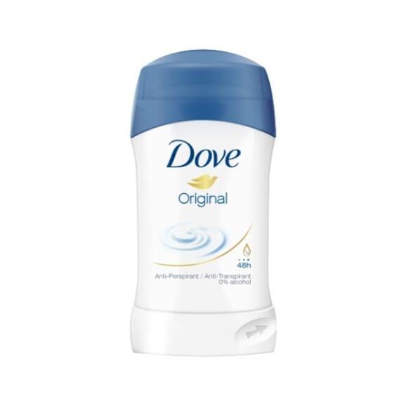 Dove Original to antyperspirant w wygodnej formie sztyftu, który w 1/4 składa się z kremu nawilżającego. Doskonale pielęgnuje i nawilża skórę pod pachami. Ciesz się świeżością i przyjemnym zapachem nawet przez 48 godzin. Nie zawiera alkoholu.