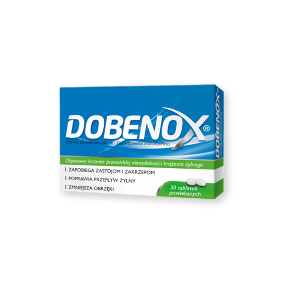 Dobenox to lek stosowany w celu usprawnienia przepływu żylnego. Lek zwiększa elastyczność ścian naczyń krwionośnych oraz zmniejsza lepkość osocza.