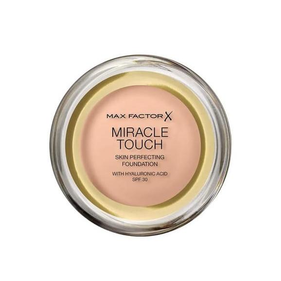 Miracle Touch to podkład udoskonalający cerę, który został stworzony, aby połączyć lekkość płynnego podkładu i bezkonkurencyjne właściwości kryjące typowe dla podkładów w kompakcie. Skutecznie przykrywa drobne zmarszczki i minimalizuje widoczność porów dla idealnej cery. Nowa, udoskonalona formuła podkladu została wzbogacona o kwas hialunorowy o właściwościach nawilzajacych i filtr SPF 30.