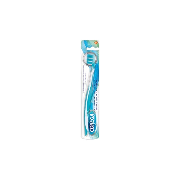 Szczoteczka 2 w 1 do mycia protez zębowych i zębów marki Corega jest przeznaczona to uniwersalne akcesorium, dzięki któremu można łatwo i dokładnie wyczyścić zęby i protezy. Antyposlizgowy uchwyt pozwala wygodnie używać szczoteczki, a miękkie włókna nie rysują materiału, z którego protezy są wykonane. Szczoteczka ma też specjalną końcówkę do usuwania resztek kremu mocującego z protezy. Szczoteczka 2 w 1 Corega jest przeznaczona do używania z pastą do zębów i protez 2 w 1 Corega, ponieważ pasta Corega ma specjalny skład, dzięki któremu nie rysuje protez i delikatnie oczyszcza zęby.
