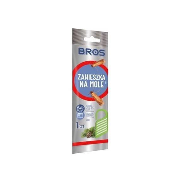 Preparat BROS w postaci zawieszki do zwalczania moli. Skutecznie zabezpiecza odzież przechowywaną w szafach, szufladach i garderobach przed niszczącym działaniem moli.