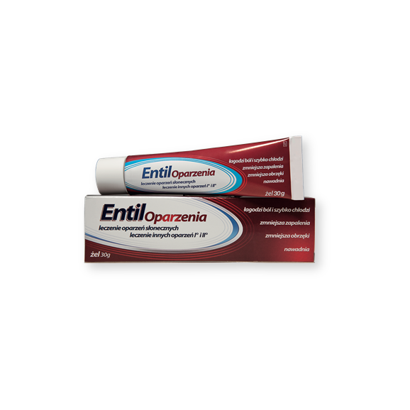 Entil Oparzenia jest hydrożelem opartym na bazie fizycznej aktywności osmotycznej, przeznaczonym do leczenia i łagodzenia oparzeń powierzchownych I i II stopnia (ból, zaczerwieniania i pojawianie się pęcherzy na ograniczonej powierzchni), oparzenia domowe, oparzenia słoneczne. Łagodzi miejscowe objawy zapalne skóry powstałe w wyniku skaleczeń, otarć, zadrapań.