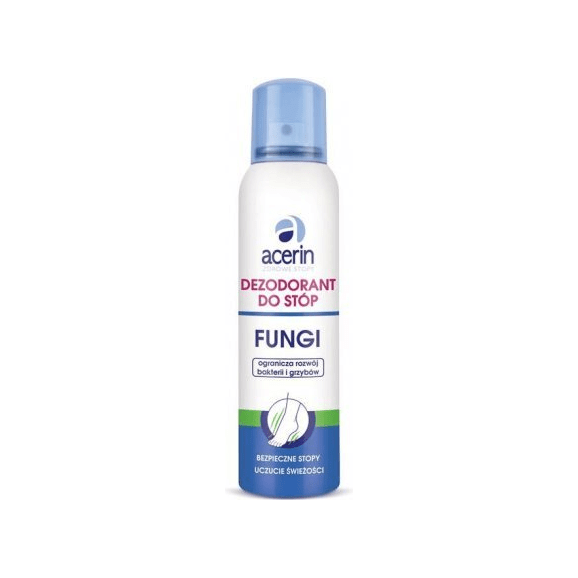 Dezodorant do stóp Acerin Fungi chroni przed powstawaniem przykrego zapachu potu oraz umożliwia utrzymanie świeżości stóp. Jednocześnie zapewnia nawilżenie i odświeżenie oraz wykazuje działanie antybakteryjne. Polecany jest w szczególności osobom, których stopy narażone są na częsty kontakt z grzybami i bakteriami, w tym dla osób uczęszczającymi na basen, aktywnie uprawiających sport, noszących nieprzewiewne obuwie oraz z nadmierną potliwością stóp.
