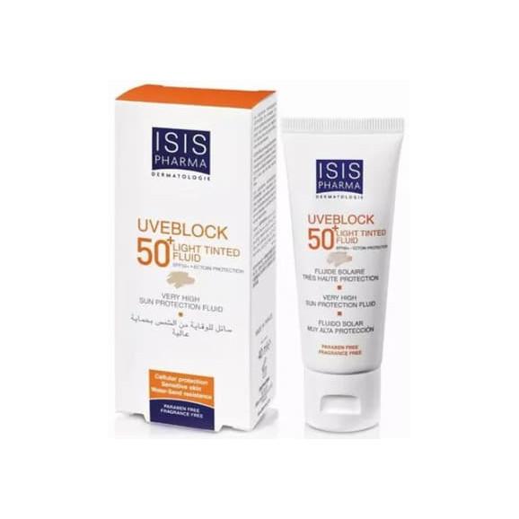 ISIS PHARMA UVEBLOCK LIGHT TINTED fluid z filtrem ULTRA UVA/UVB, delikatnie koloryzujący SPF 50+, jest kosmetykiem chroniącym nadwrażliwą skórę przed promieniami słonecznymi.