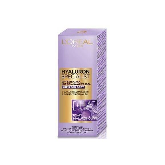 L'Oreal Paris Hyaluron Specialist, krem nawilżający pod oczy z kwasem hialuronowym, 15 ml
