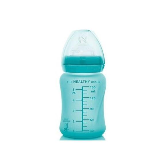 Everyday Baby, butelka szklana do karmienia, reagująca na temperaturę, rozmiar S, turkusowa, 150 ml