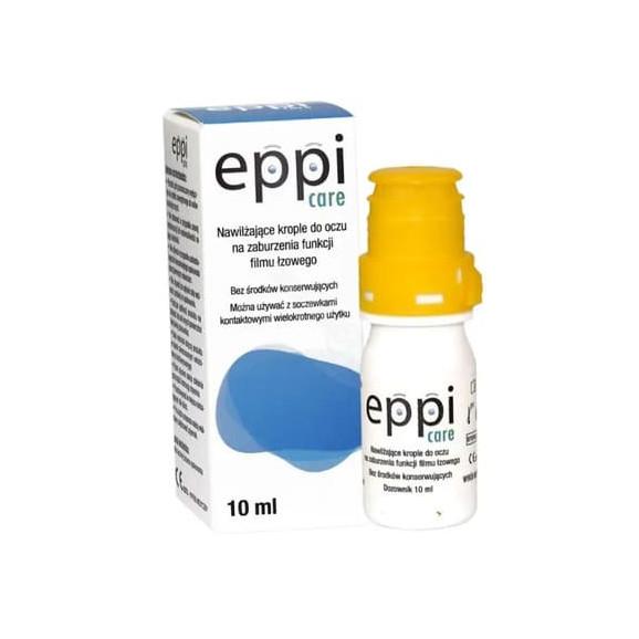 Wyrób medyczny Eppi Care krople do oczu to produkt na bazie witaminy E i witaminy B2, a także aminokwasów oraz hialuronianu sodu, który wykazuje działanie ochronne w stosunku do nabłonka rogówki oka. Produkt może być stosowany wraz z soczewkami kontaktowymi, poza tym nie zawiera dodatku żadnych środków konserwujących.