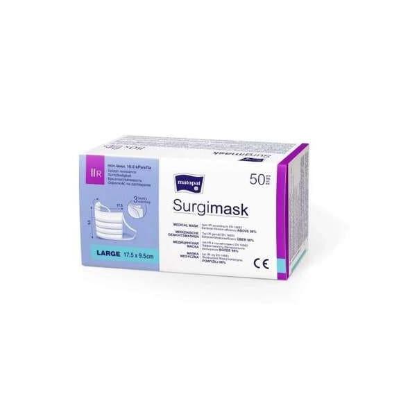 Matopat, maski medyczne Surgimask to jednorazowe wyroby medyczne wykonane z trzech warstw hipoalergicznej włókniny polipropylenowej. Charakteryzują się bardzo wysoką skutecznością filtracji bakteryjnej. Maski wykonane są z surowców zapewniających odporność na zachlapanie zgodnie z wymaganiami normy PN-EN 14683:2019 dla masek typu IIR.